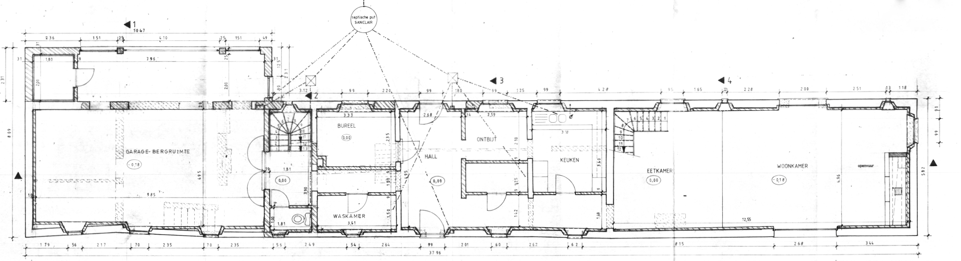 En 1992, Henri Lust est chargé de la transformation et reconversion d’un ancien et étroit bâtiment de ferme et ses dépendances, d’environ 40 m de long, en maison d’habitation sur l’ensemble de la bâtisse. La situation de ce bâtiment, situé à un quart d’heure du centre de Bruxelles, est exceptionnelle, en limite du petit village de Gaasbeek en Brabant Flamand, au bout d’un petit chemin aboutissant sur les champs à l’infini. C’est ce qui a décidé les propriétaires à en faire l’acquisition, malgré le challenge que constituaient les travaux à réaliser, du fait de l’état déplorable du bâtiment. Ayant eu connaissance de réalisations de ce type par l’architecte Lust, ils firent appel à ce dernier pour établir le projet et en assurer la réalisation. L’étroitesse du bâtiment ne permettait pas d’établir une circulation intérieure de bout en bout du bâtiment à l’étage, du fait de la toiture fortement mansardée, aussi deux quartiers distincts ont été établis, l’un pour les enfants, l’autre pour les parents, avec accès séparé pour chacun, l’appartement des parents étant établi à une des extrémités du bâtiment sur toute la largeur de l’étage, donnant sur une mezzanine surplombant le séjour avec sa grande cheminée à feu ouvert. Le résultat, malgré l’étroitesse du bâtiment, procure malgré tout une sensation d’espace du fait de l’agencement réalisé. La piscine intérieure, avec ses équipements permettant de maintenir une température élevée et l’hygrométrie adéquate de l’air, donne sur une plage intérieure communiquant avec l’extérieur par une large baie vitrée avec châssis coulissant.